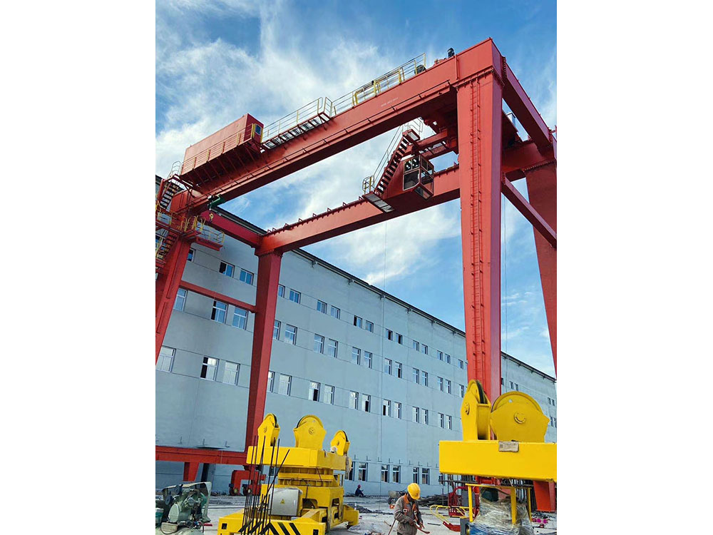 門式起重機(又稱龍門起重機)是橋架通過兩側(cè)支腿支撐在地面軌道上的橋架型起重機。在結(jié)構(gòu)上由門架、大車運行機構(gòu)、起重小車和電氣部分等組成。有的門式起重機只在一側(cè)有支腿,另一側(cè)支撐在廠房或棧橋上運行,稱作半門式起重機。門式起重機的門架上部橋架(含主梁和端梁)、支腿、下橫梁等部分構(gòu)成。為了擴大起重機作業(yè)范圍,主梁可以向一側(cè)或兩側(cè)伸出支腿以外,形成懸臂。也可采用帶臂架的起重小車,通過臂架的俯仰和旋轉(zhuǎn)擴大起重機作業(yè)范圍。