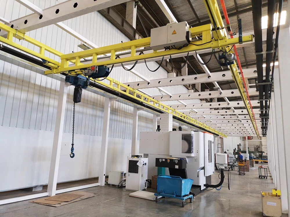 2.柔性組合式懸掛起重機(jī)自重特別輕,滑輪與軌道之間的摩擦力很小,操作輕便,可以很輕松的用手移動(dòng),能夠很迅速的輸送搬運(yùn)那些不太方便的輕小型的物件。系統(tǒng)配備的環(huán)鏈電動(dòng)葫蘆及其行走驅(qū)動(dòng)裝置,電器控制裝置和配套系統(tǒng),確保系統(tǒng)工作壽命長(zhǎng),無(wú)故障,免維護(hù)。